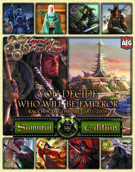 Commission; Fabricated poster advertisement for Alderac Entertainment Group's "L5R" product line and flagship franchise. Assembled from provided art in Photoshop 7. Legend of the Five Rings is copyrighted by Alderac Entertainment Group and is not a property of SpookyElectricOnline.com. See www.l5r.com for more info about L5R. All artwork elements for the above work are property of AEG and may be copyrighted by the original artists. The above image is displayed and hosted on this website with AEG's permission.